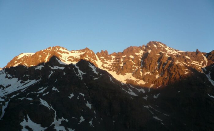 This is a relatively easy day with just 5-6 hours walking and will take you from Imlil (1740m), to Tizi n’ Tamterte (2300m), to Tachdirt. You will have lunch at the pass before you walk on to Tachdirt or Tinghourine, and a relaxing night in a guesthouse.