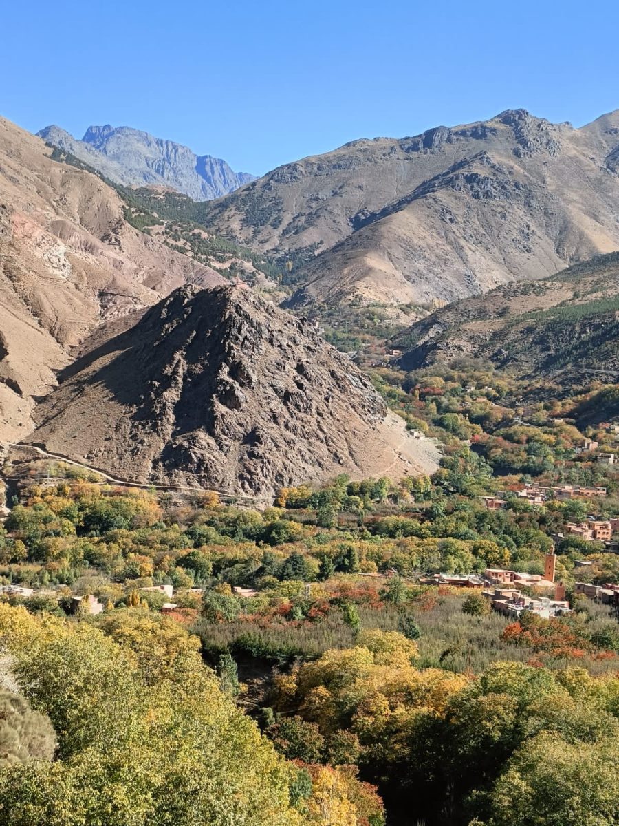 We will have a chance to see the local agriculture. At Tizi n Tachete you can look down on the Imlil and Ait Oussaden valleys. Then we walk on a short way before stopping for lunch. After the picnic it is about another 2 and half hours south-west to the traditional red clay terraced village of Tiziane (1750 m)where we spend the night.