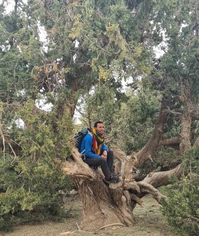 Three hours hiking this morning up through groves of walnut trees, fields of corn and barley. We will meet a lot of sheep and goatherders on the way as well as women and children carrying fodder and fire wood. We cross Tizi n’Tagdalte and descend till we come to a small spring set amongst the juniper trees. Where we will stop for our lunch.