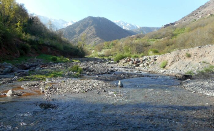 A very early breakfast to set out around 6am., to attain, after a three hour steep climb, the highest peak in the Maghreb (4167m). The panorama from here is simply stunning. Whenever you are ready, we shall take the Ikkhibi Sud or South Cirque for a straightforward – with your guide – 2 to 3 hour descent back to the Refuge for a picnic. After lunch We shall now set off towards the north along steeply descending, zigzagging trails of the higher slopes of the Valley of the Assif n’Isouhouanem n’Ouagounss towards the Shrine of Sidi Chamharouch. Set beside a waterfall, There is a pilgrimage ‘marabout’ shrine here, probably the remnant of a pre-Islamic culture, but forbidden to non-Muslims. another 2 hours downhill will allow to get to the village of Imlil from where most of the treks start prior to take the taxi back to Marrakech.