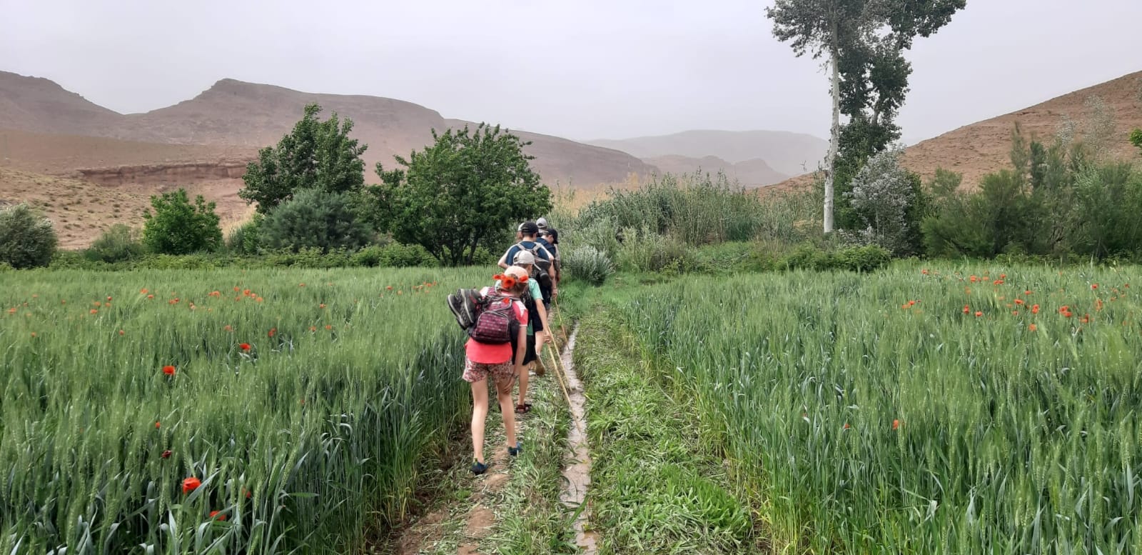 Walking along the river, planted fields of corn, barley, roses and almond trees. After lunch, we continue to achieve the panoramic view on saghro, rose valley and Ighil Mgoun (4071m), we go down quietly towards Agouti Al Foukani where we camp. 5 hours walk.