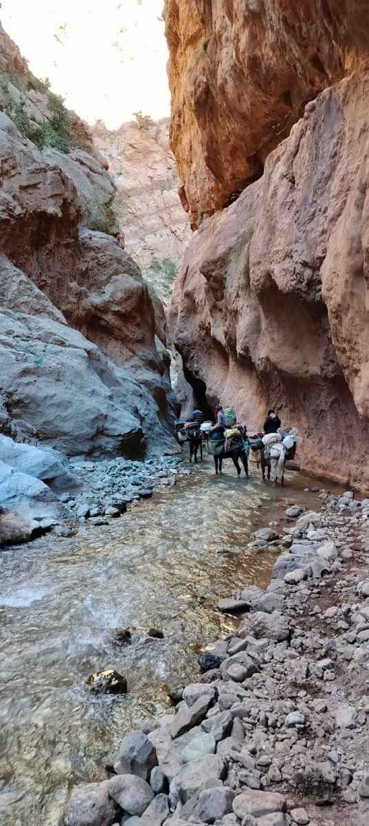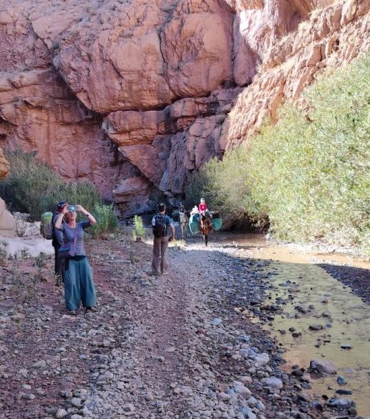 After breakfast, departure by car towards Ait Khiar (1490m), the start point of our trek where we meet the muleteers. We across the High Atlas mountains by Tizi N’Tichka pass, Ouarzazate, Skoura palm grove and rose valley. We hike along the river to explore the beautiful berber villages, gardens and Kasbahs, we spend the night in camp. 3 hours walk.